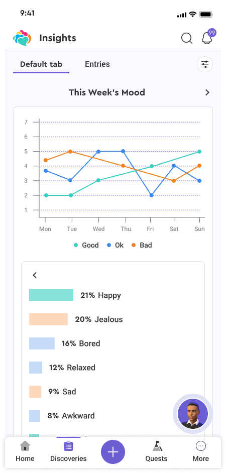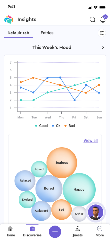 To complement this, we added a simple trend line showing mood ratings over the week for a quick temporal snapshot