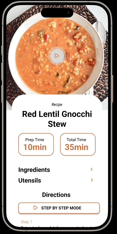 to know which utensils and ingredients will be needed for each step and displayed easily so they don't have to keep searching their phone in the middle of the cooking process