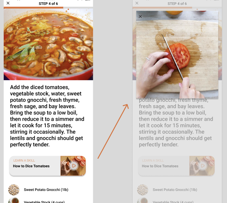 Users want to make sure what they’re doing looks right and having a video of the entire recipe being made from start to finish at the beginning can prepare them for what they are about to do.