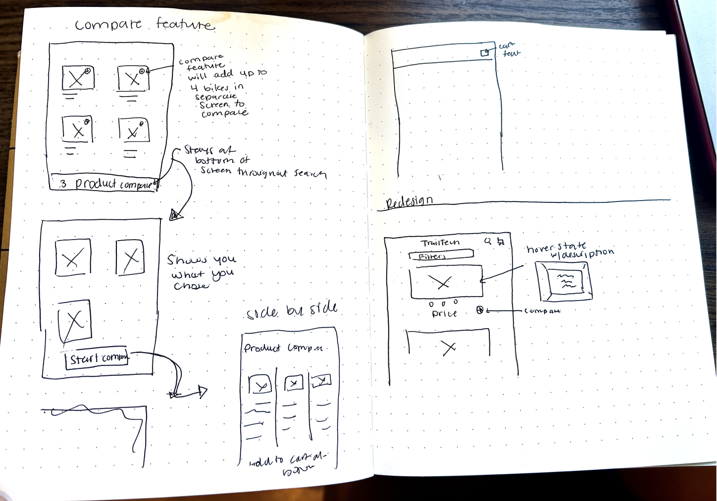 Using what I learned from my guerilla testing, I added a hover description to the bikes, changed the compare CTA and moved the ‘Buy’ button on the checkout page